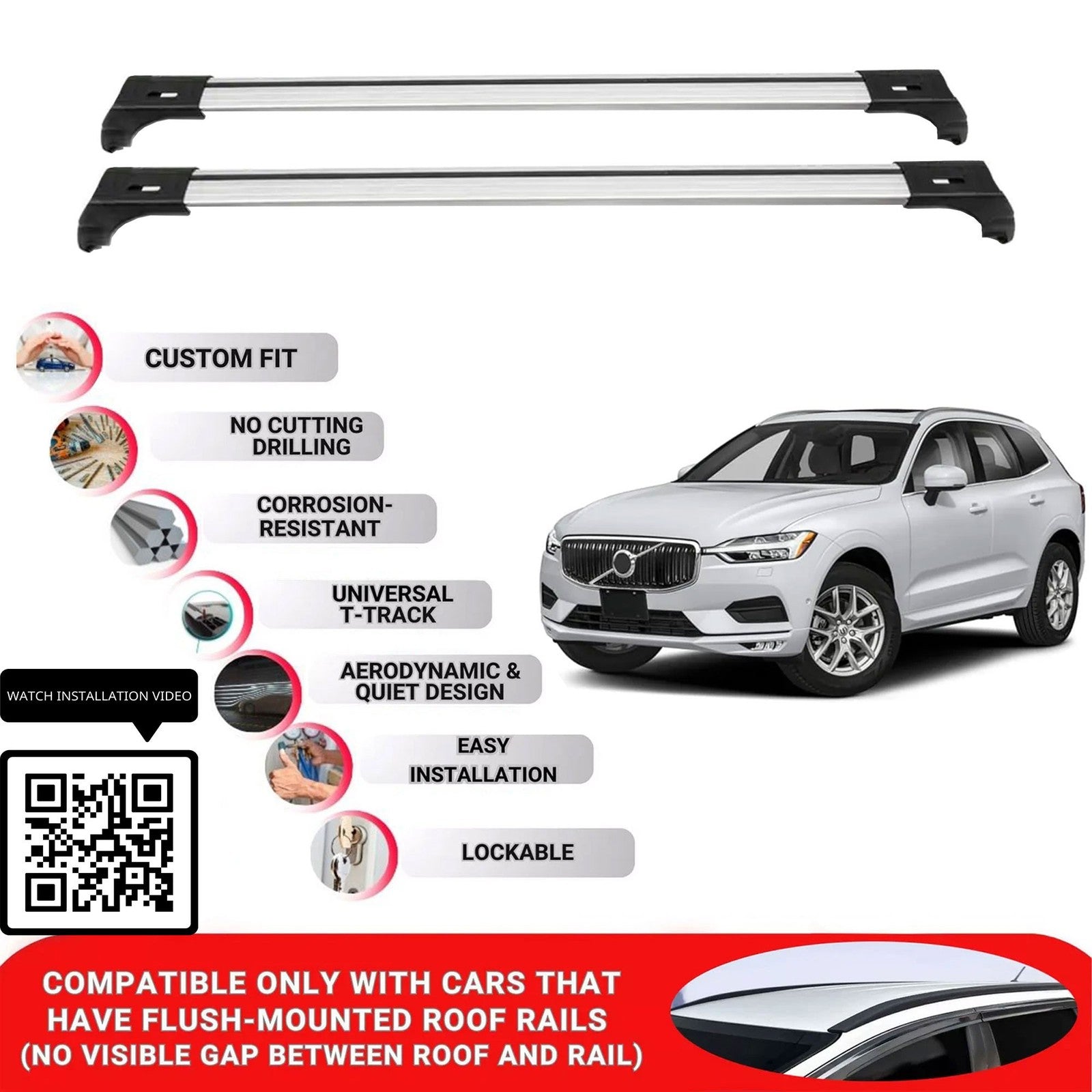 Aluminum Roof Bars for Cars with Flush-Mounted Roof Rails, Compatible with Volvo Xc60 Suv 2018-2019-2020-2021-2022-2023-2024