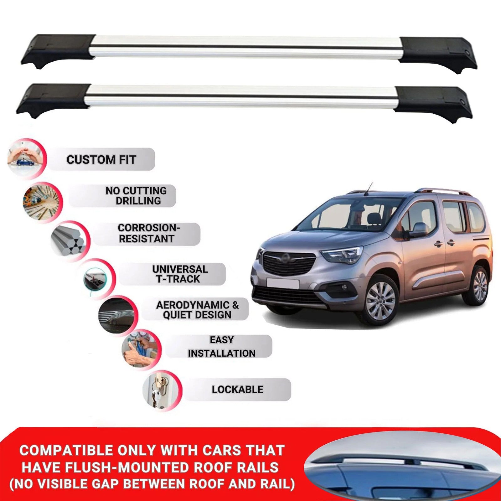 This product is designed for vehicles with raised roof rails only. It is not compatible with flush-mounted or integrated roof rails.