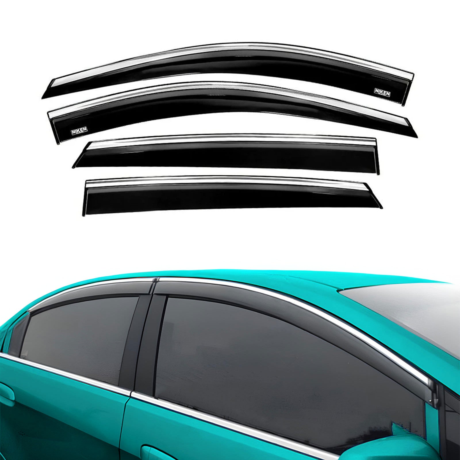Premium Quality Car Rain Deflector: Made from durable polycarbonate with stainless steel chrome trims, this car rain deflector ensures long-lasting use, providing a sleek look and reliable car window rain deflector functionality.
