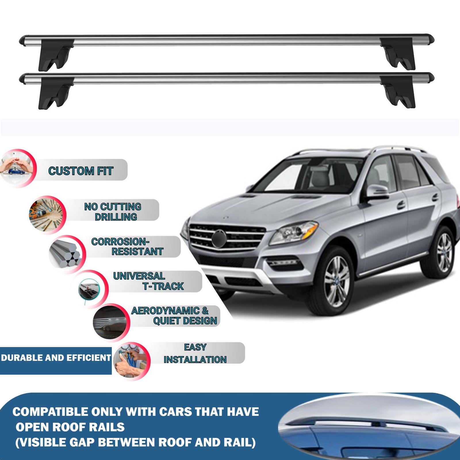 Aluminum Roof Bars for Cars with Raised Roof Rails, Compatible with Mercedes Benz M-Class W166 2011-2012-2013-2014-2015
