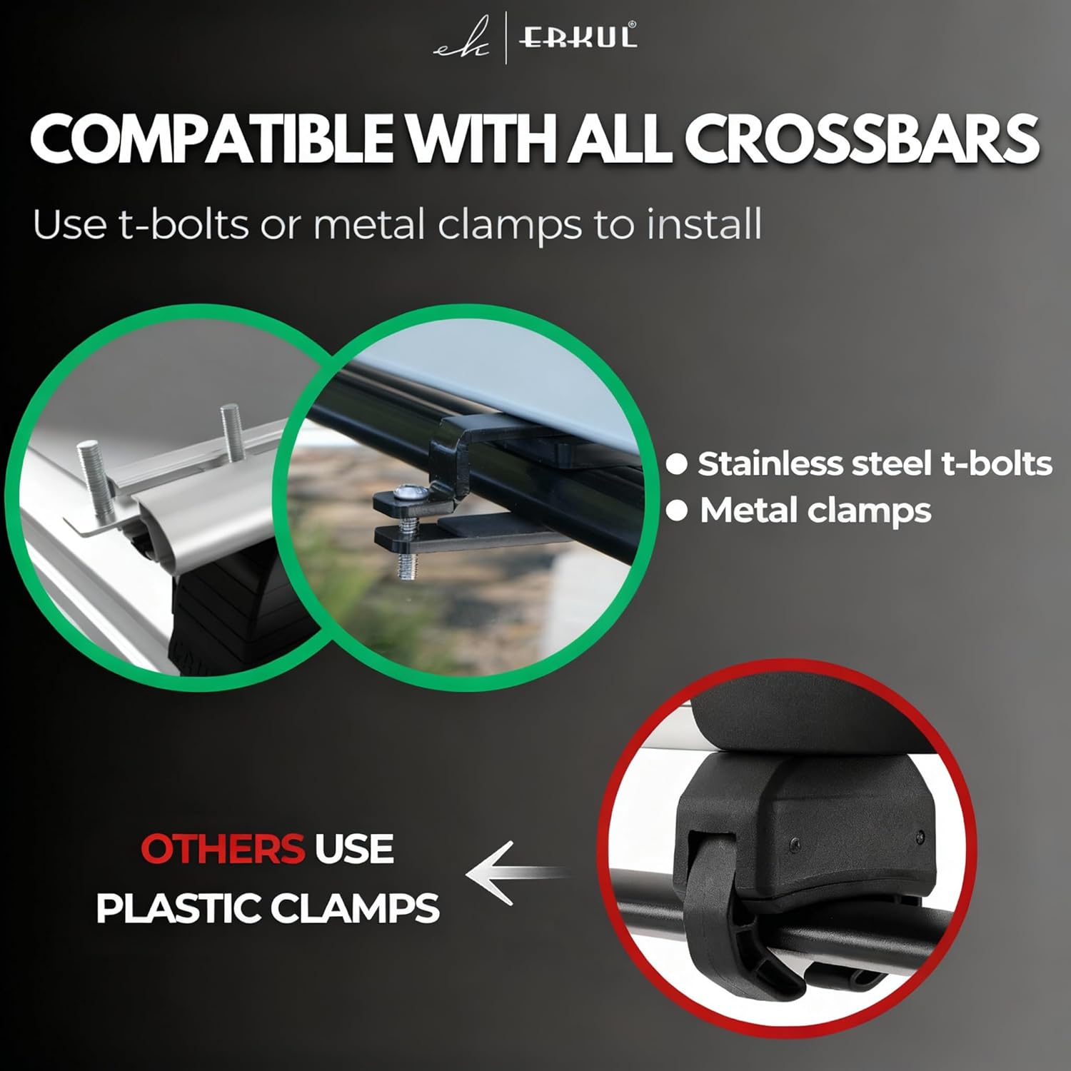 Clamp-On installation: fits many square, round and aero-style cross bars