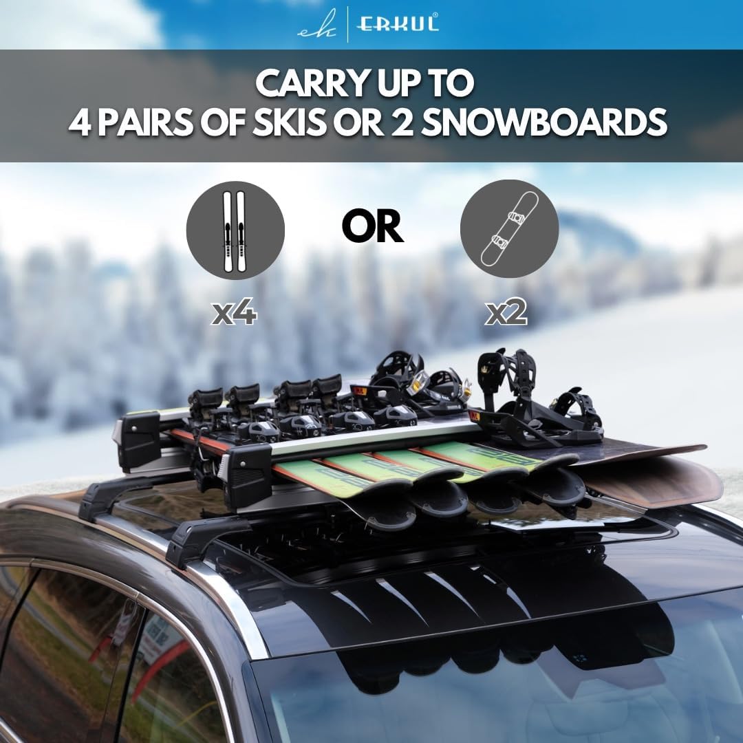 Capacity: holds up to 4 ski pairs or 2 snowboards