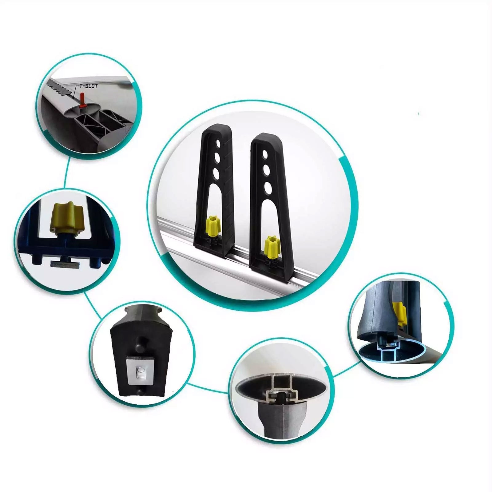 The roof bar ladder rack set is **T-Track compatible** and fits most systems, offering a secure solution for safely securing items to your roof.