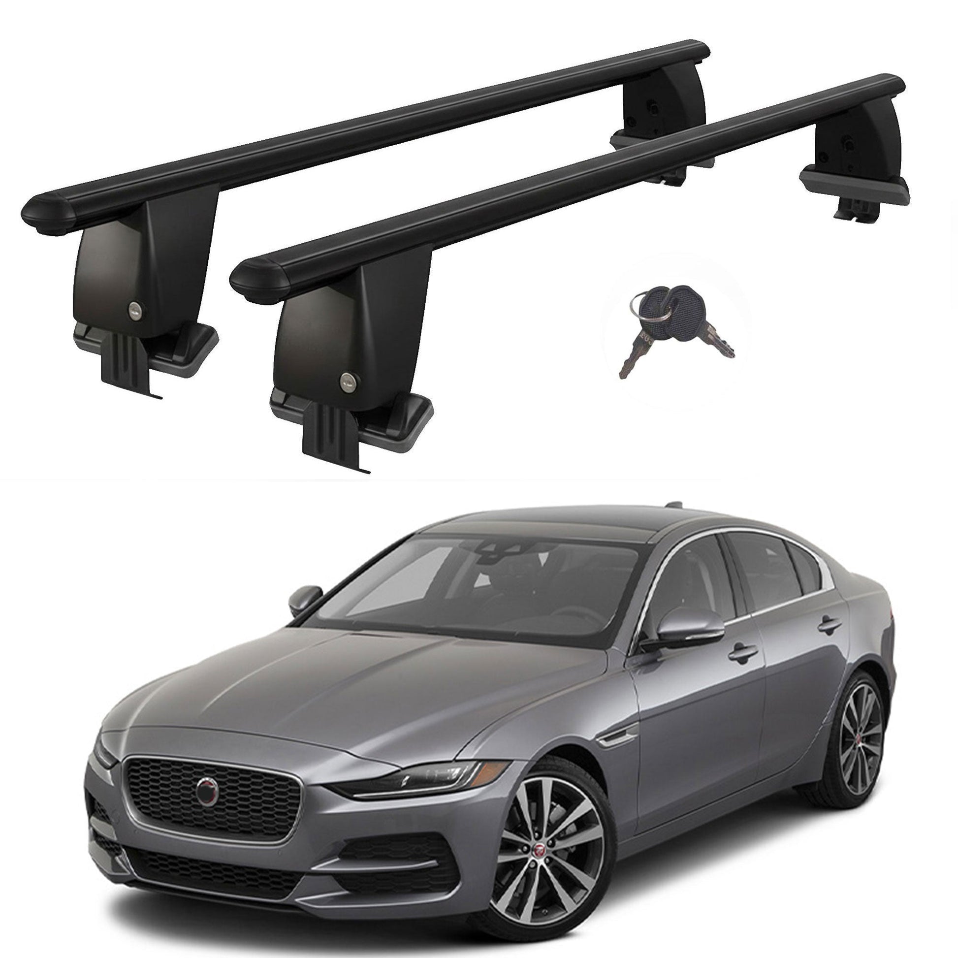 Roof Bars For Cars Without Rails For Jaguar Xe 2015+ Lockable Black 2 Pcs