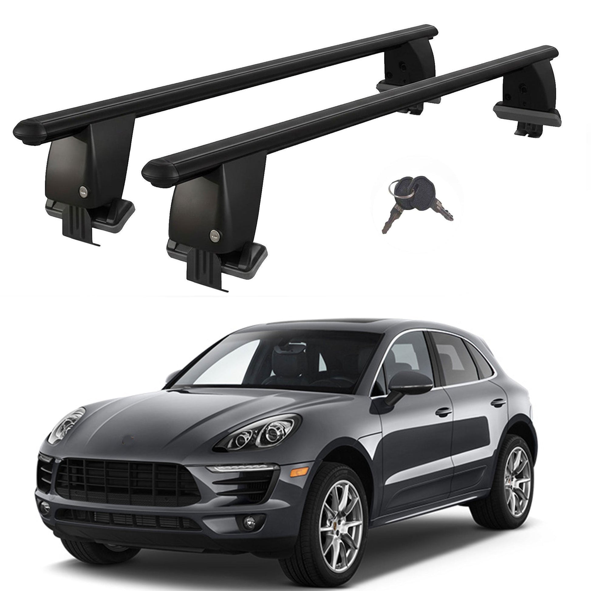 Roof Bars For Cars Without Rails For Porsche Macan 95B 2013+ Lockable Black 2 Pcs