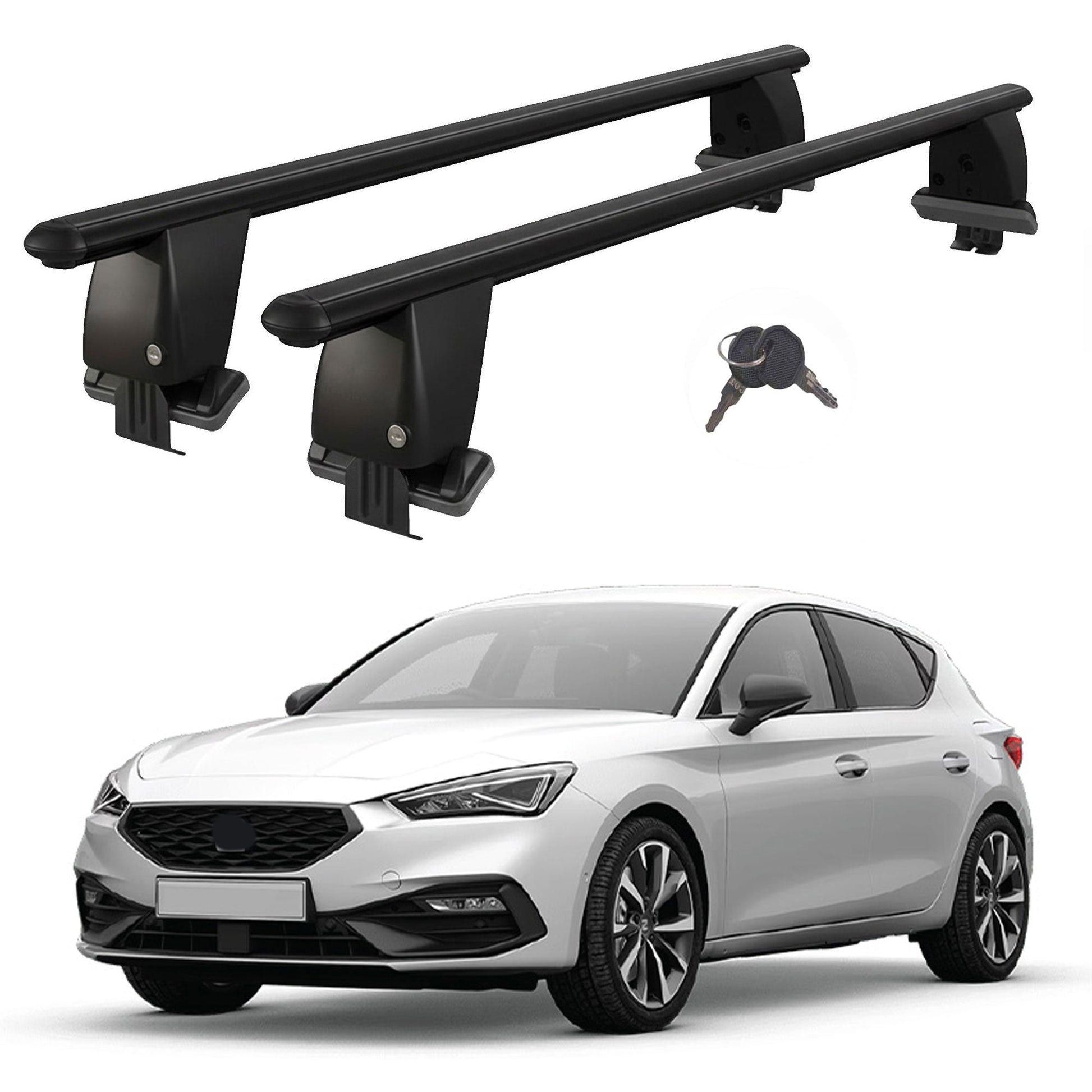 Roof Bars For Cars Without Rails For Seat Leon Mk4 2020+ Lockable Black 2 Pcs