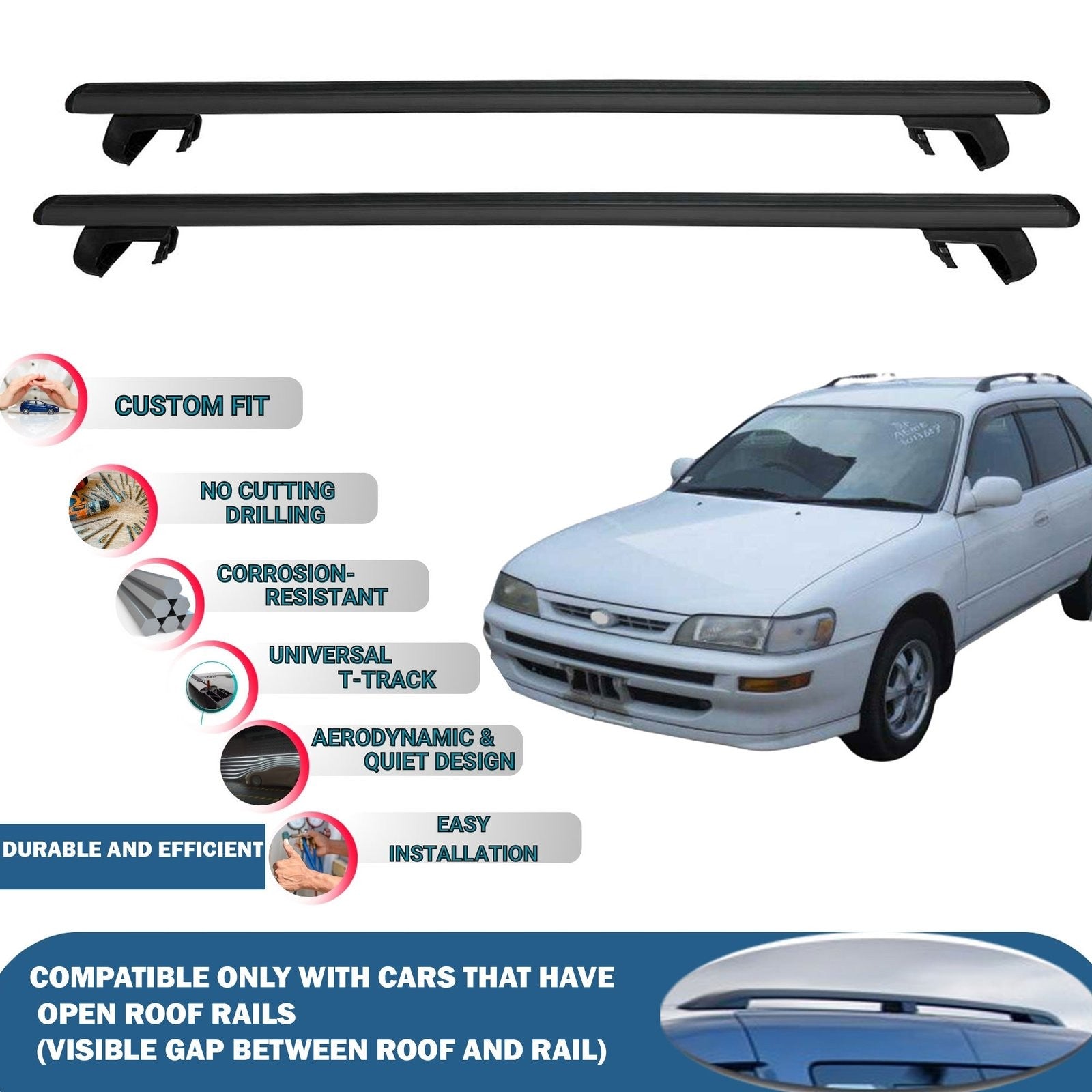 Aluminum Roof Bars for Cars with Raised Roof Rails, Compatible with Toyota Corolla SW 1993-1994-1995-1996-1997