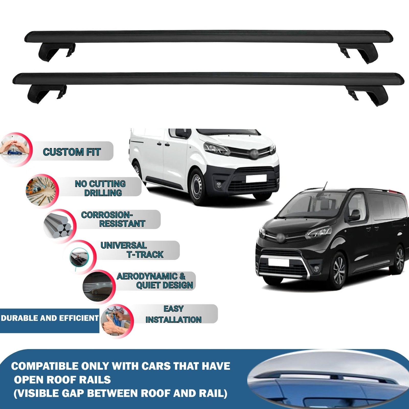 Roof Rack Cross Bars for Toyota Proace/Verso 2016-2024 Rail Carrier for Roof Tents 2 Pcs Black
