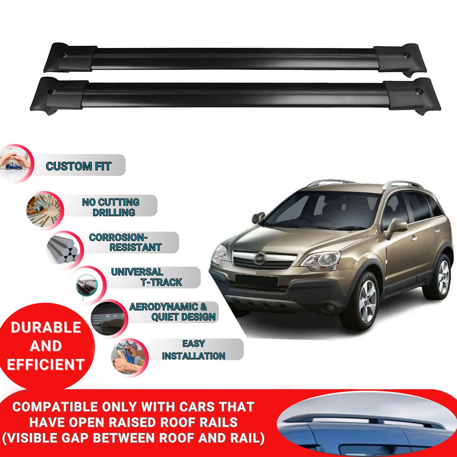 Aluminum Roof Bars for Vauxhall Opel Antara Suv 2007-2008-2009-2010-2011-2012-2013-2014-2015-2016.