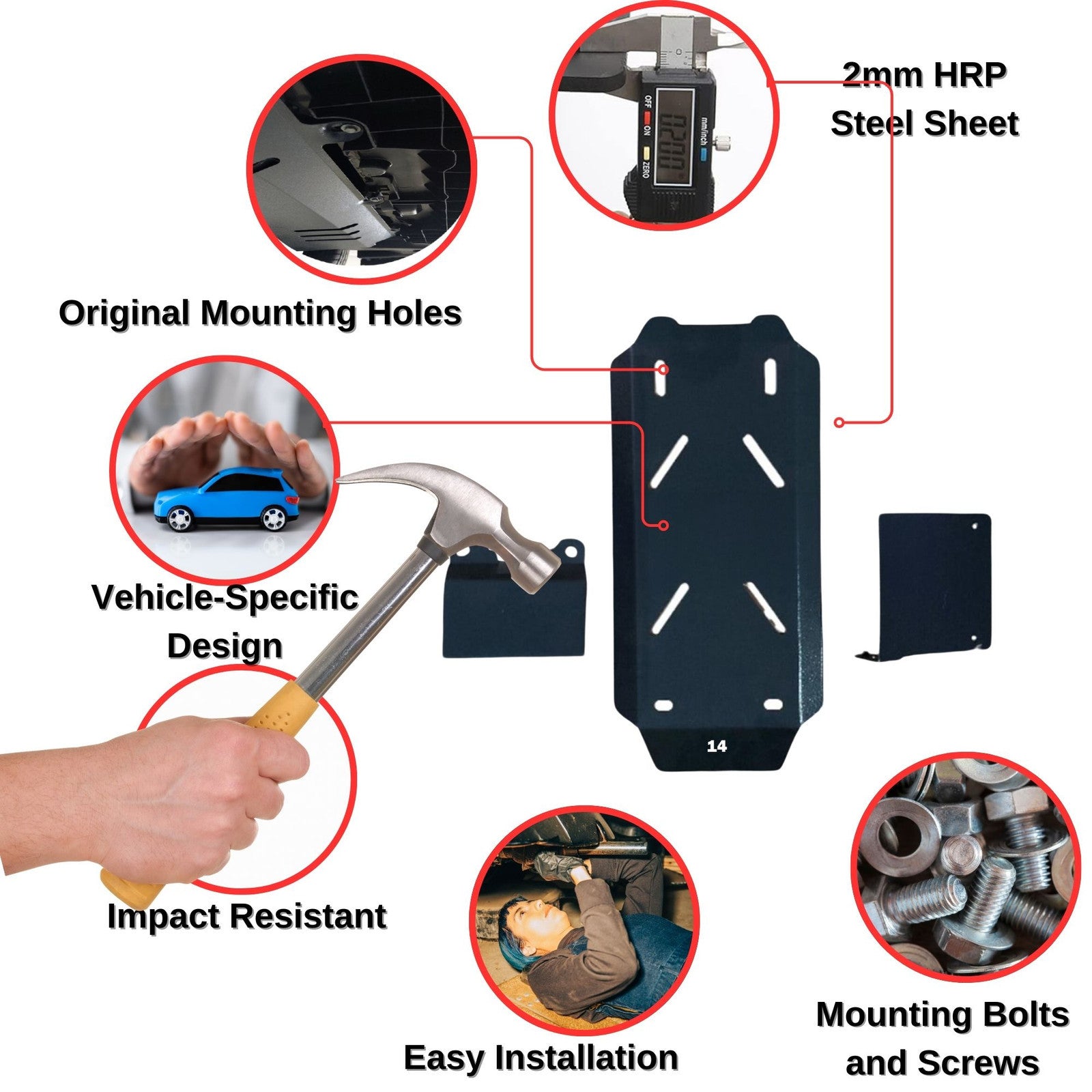 This **Under Engine Cover** effectively protects your engine, oil pan, and chassis from road debris, water damage, mud, and stone impact for extended vehicle longevity. Ideal as a **Front Skid Plate** and **Rust Shield** for long-lasting protection. Built with **Premium Steel Material**, it is highly **Rust-Resistant**.